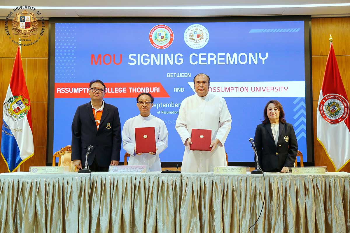 Rev. Bro. Dr. Sirichai Fonseka, President of Assumption University of Thailand (AU), and Rev. Bro. Dr. Sakda Sakontawat, Director of Assumption College Thonburi (ACT), have joined forces once again to renew a historic partnership between their two schools. This renewed commitment focuses on advancing academic growth, moral education, and community development for the future.