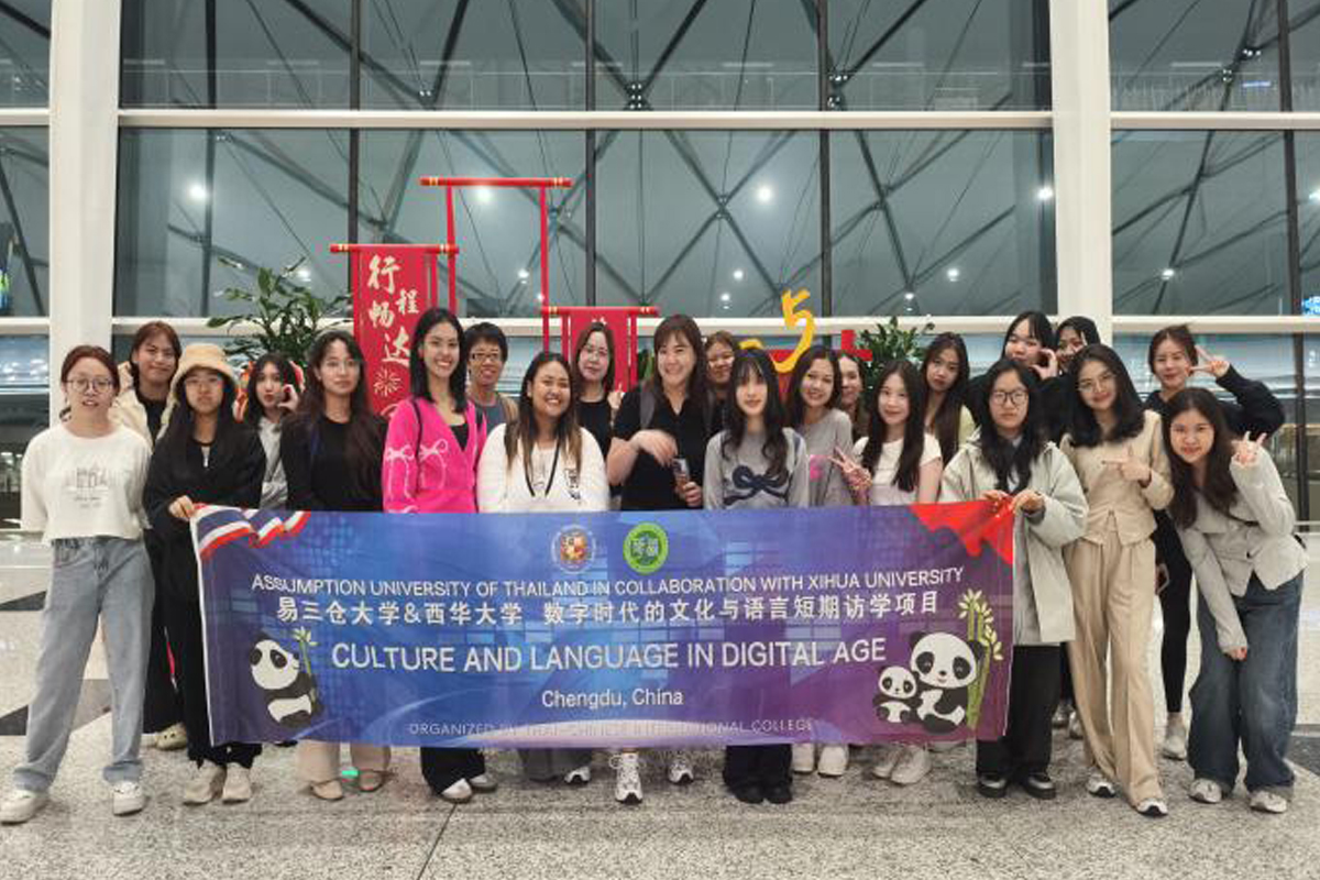 Amid the transformative waves of the digital age, cultural and linguistic exchanges are flourishing with unprecedented vitality. From April 6 to 27, 2025, Assumption University of Thailand (AU) and Xihua University jointly launched a unique short-term exchange program. Eighteen undergraduate students majoring in Chinese-English Digital Communication from AU, accompanied by two faculty members, embarked on a journey to Xihua University. Over three weeks, they not only delved into the charm of digital media and communicative Chinese but also experienced Chengdu—a city where history meets modernity, and tradition blends with innovation—through cultural visits and hands-on activities.