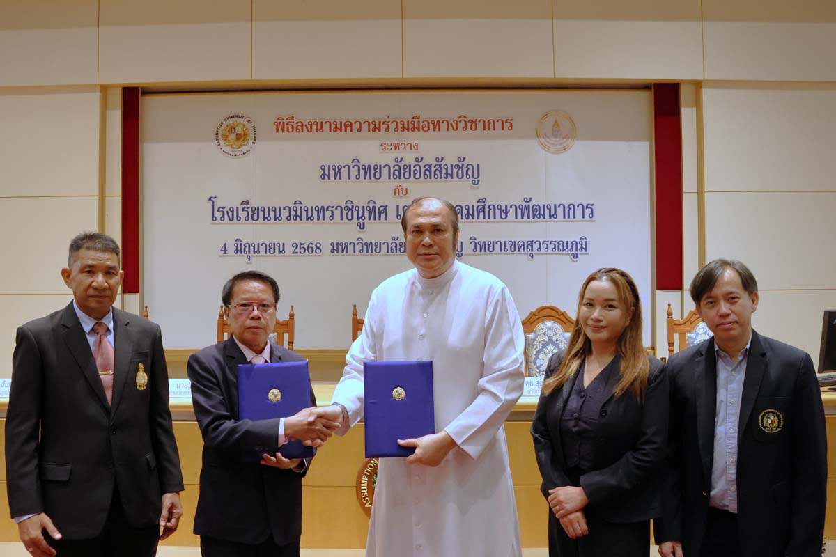 Assumption University of Thailand (AU) proudly welcomed a delegation from Nawamintharachinuthit Triamudomsuksapattanakarn School for the official signing ceremony of a new Memorandum of Understanding (MoU) to promote academic collaboration and mutual development between the two institutions.