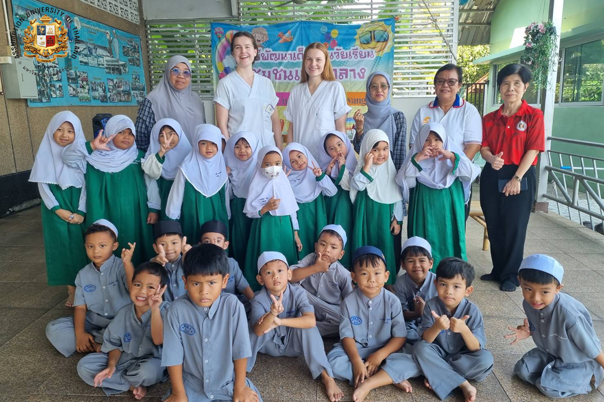 Assumption University of Thailand (AU) welcomed the two Public Health Nursing students, Ms. Marie Balchen and Ms. Silje Tjosvoll from the University of Stavanger (UIS), a highly respected institution in Norway known for its excellence in healthcare education and research. They are practicing their internship at the Bernadette de Lourdes School of Nursing Science from February 24–March 21, 2025. This internship practicum is under the project “Overseas Internship” which is responsible by Dr. Chavalee Boonto, Dr. Varunaj Churnai, ABAC alumni, is the co-ordinator of the Norwegian Mission Society, Thailand which helps to make this cultural exchange happened.
