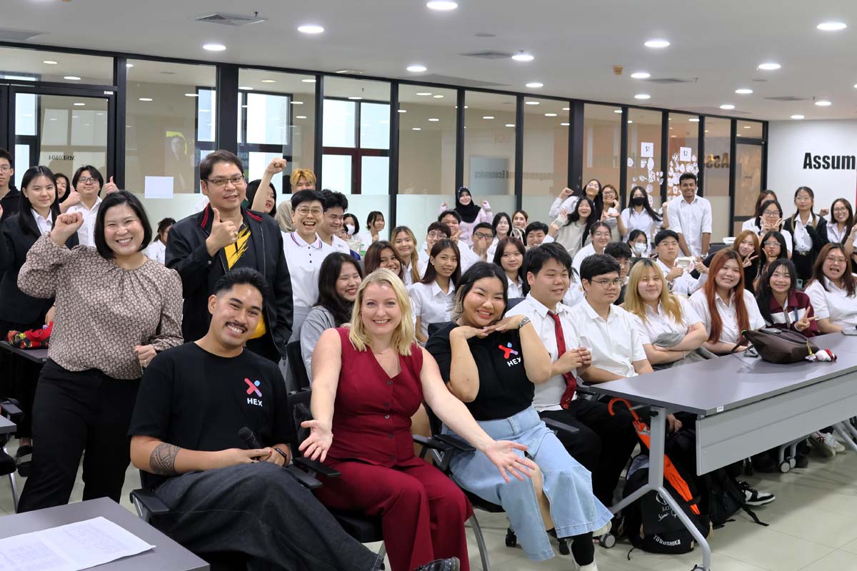 On July 21, 2025 , Assumption University of Thailand (AU)‘s Suvarnabhumi Campus buzzed with innovation and entrepreneurial energy during the special talk titled “Taking Your Idea Through Reality” led by HEX’s dynamic team. The event featured insights from Jaclyn Benstead, Co-Founder and Head of New Markets, Shaye Pumar, Chief Marketing Officer, and Charlie Perelini, Programs Experience Lead.