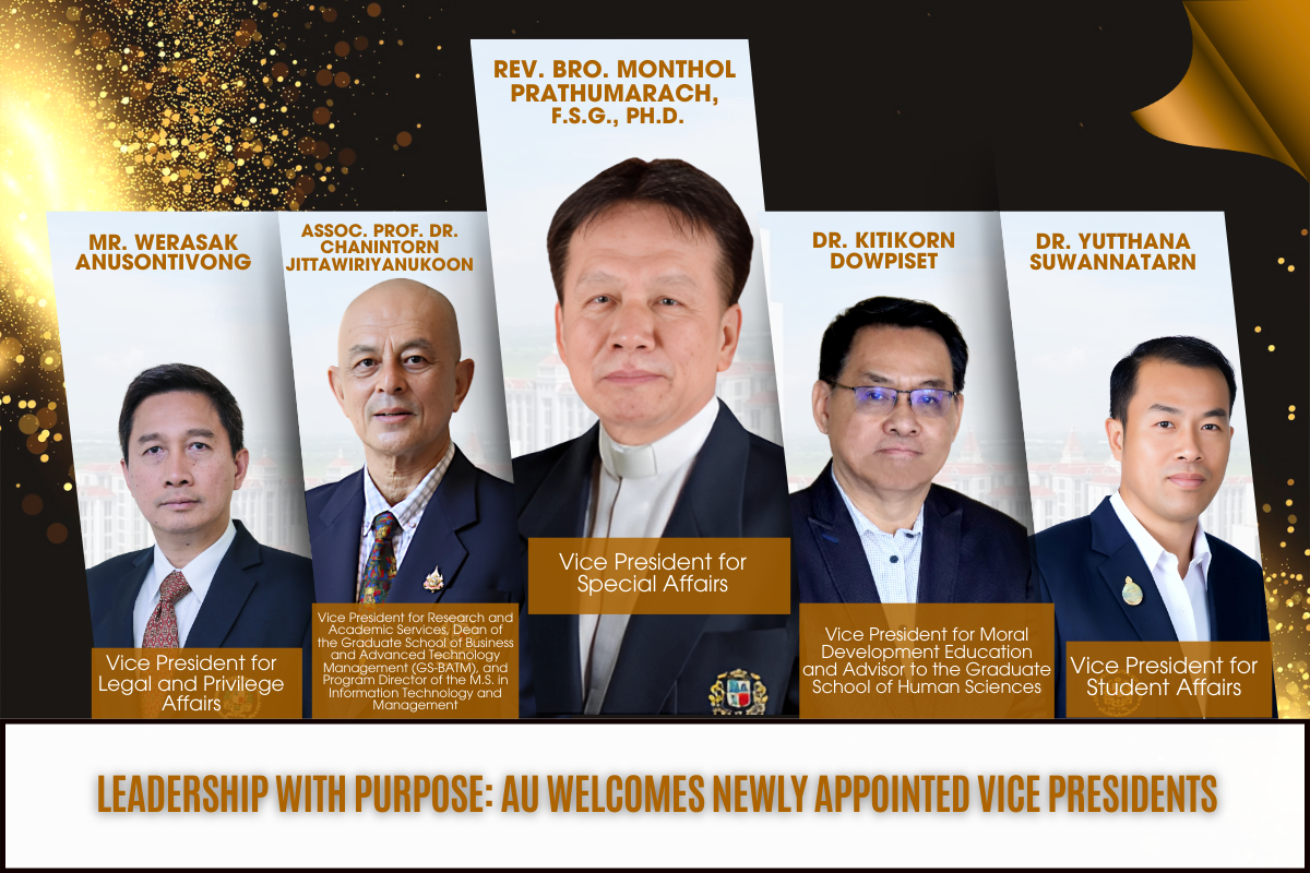 Assumption University of Thailand (AU) has announced several key appointments to its executive leadership team, reflecting the University’s commitment to academic excellence, student well-being, moral development, and institutional integrity. The following appointments are effective from May and June 2025, as signed by Rev. Bro. Sirichai Fonseka, f.s.g., Ph.D., President of Assumption University of Thailand.
