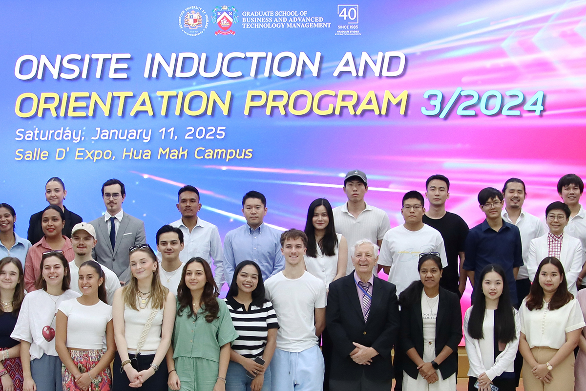 On January 11, 2025, from 8:00 AM to 2:00 PM, Assumption University of Thailand (AU) hosted its Induction Day for graduate students at Salle d’ Expo, Assumption Hall, Hua Mak Campus. The event was organized by the Graduate School of Business and Advanced Technology Management to warmly welcome new graduate students and prepare them for their academic journey at AU.